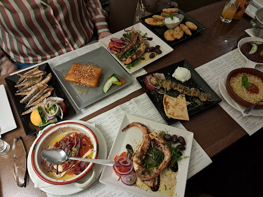 Read moreAuf der Internetseite heißt es wortwörtlich, dass die griechische Küche etwas anders präsentiert werden soll und das ist dem Team der Ouzeria super gelungen. Ich habe in griechischen Restaurants öfter das Problem, dass es ganz viele tolle Sachen auf der Speisekarte gibt, es aber einfach so große Portionen sind, dass man sich auf eine festlegen muss, oder darauf angewiesen ist, dass die Begleitungen mit einem das Essen teilen. Daher bin ich allgemein ein großer Tapas Fan. Die Kombination aus Tapas und der griechischen Küche ist eine tolle Idee und super umgesetzt worden. Das Essen war durchweg sehr lecker, der Service ganz toll und das Ambiente sehr gemütlich. Der eine Stern Abzug setzt sich wie folgt zusammen: Ein halber Punkt ist leider der unfreundlichen Art bei der telefonischen Reservierung des Tisches und der Tatsache geschuldet, dass kein Name auf der Reservierungsliste auch nur annährend zu dem von uns am Telefon extra buchstabierten Namen gepasst hätte, was bei einem vollen Haus für uns sehr ärgerlich gewesen wäre. Dafür rufe ich ja schließlich im Vorfeld an und reserviere. Der andere halbe Stern ist dem unfassbar lauten Telefon geschuldet. Wenn fast alle Tische belegt sind, die Leute Geräusche beim Essen machen und sich unterhalten und man als Gast trotzdem zusammenzuckt, wenn das Telefon schellt und das bei einem 45 Minütigen Aufenthalt gleich fünf Mal, dann zieht das die Stimmung leider runter. Wenn diese beiden Punkte in Zukunft verändert werden könnten, wäre ein Aufenthalt für uns bei gleichbleibender Leistung...