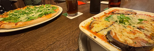 Mich haben die Details beeindruckt. Dem Brot, was es zu meiner Parmigiana (sehr lecker!) gab und auch Grundlage für die tollen Bruschettas war, konnte man zusehen wie es frisch gebacken duftend und dampfend aus dem Steinofen kam. Der Parmesan zur Pasta war nicht so ein Industriepulver sondern richtig gehobelte grobe Späne. Der Nachbartisch bekam eine Antipastiplatte bei der ich sofort neidisch war. Und nächstes Mal werde ich definitiv eine der verlockenden Pizzen probieren.
