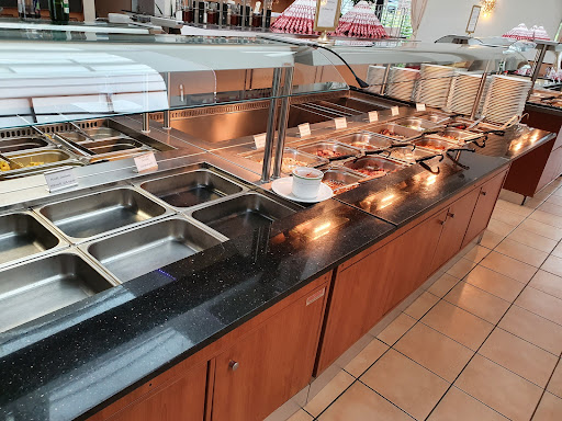 leider überwiegt aber das Negative: Das Buffet ist sehr überschaubar gewesen und kaum mit den entsprechenden Gerichte gefüllt und wenn waren diese schon durchs Warmhalten ausgetrocknet oder zulang frittiert worden. Die Gerichte, die nicht mehr vorhanden waren wurden nicht vom Personal gesehen und mussten wenn gewünscht immer erneut beim Service angesprochen werden. So war das zusammenstellen für eine Kinderteller sehr spartanisch oder man müsste auf die entsprechende Gerichte warten. Es wurde live cooking angeboten und frische Zutaten mithilfe eines Teriyakigrill s zubereitet, leider bräuchte das Zubereiten eine Ewigkeit bei nur zwei zusammengestellte Teller. Sollte sich jemand immer noch überlegen dort hinzufahren, so ist zu sagen, dass es geschmacklich einstimmig der Familie, das Essen was hier angeboten wurde weit unterhalb des standarts liegt. Sei es das selbst zusammengestellte Essen noch das Angebotene von Buffet. Das Hygienekonzept ist zum Teil umgesetzt aber nicht wirklich mit verstand. Das Desinfektionsmittel direkt neben dem Essen auf dem Buffet ist fragend. Die Toiletten werden nicht sauber gehalten bzw. nicht kontrolliert. Die Toilette war vollgesch....en bis auf den obenliegenden Rand die Waschamaturen am kleben. Ekelhaft. Die Atmosphäre ist wie in einer Halle in dem gerade jemand mit Geschirr hantiert. Und damit war auch das Fass zum Überlaufen gebracht. Wir sind dann auch gefahren und werden da nicht mehr hin wollen.