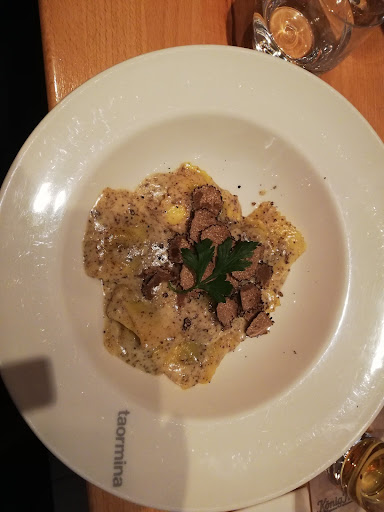 Read moreKurzer Spoiler: Wir waren zum ersten, aber nicht zum letzten Mal im Taormina :) Meine Frau und ich waren vor kurzem das erste Mal im Taormina essen und wir waren gleich von dem ausgezeichneten Ambiente und dem herzlichen Empfang begeistert. An diesem Freitag Abend war das Lokal bereits gut besucht, weshalb wir froh waren, vorher telefonisch reserviert zu haben. Zugleich wurden wir von dem freundlichen Personal zu unserem Tisch begleitet und mussten nicht lange auf die Speisekarten warten. Wir bestellen ein Glässchen Prosecco vorweg und der Kellner stellte uns die Tageskarte vor. Von dieser nahmen wir die Steinpilzsuppe und die Burrata auf Tomatentartar als Vorspeisen. Meine Frau ist Vegetarierin und war sehr entzückt über die reichliche Auswahl vegetarischer Speisen. Beides hat uns vorzüglich geschmeckt. Zu trinken empfahl uns unser Kellner den Buonora Etna aus Sizilien, der zu 100% aus Carricante gekeltert wird. Ein perfekter Begleiter für einen Frühlingsabend. Mineralisch, fruchtig und säurehaltig genug, um neben den aromatischen Speisen, wie der Steinpilzsuppe nicht unter zu gehen. Als Hauptgericht nahm meine Frau die frischen Bandnudeln mit Trüffel, Parmesan und Burrata und ich die Bandnudeln mit Meeresfrüchten. Die Nudeln waren richtig schön Al Dente und die Sauce zu einer feinen Creme verrührt. Beides ein Gedicht und genau so portioniert, dass wir den letzten Platz in unserem verwöhnten Magen noch mit einem köstlichen Panna Cotta schließen konnten. Wobei das Dessert ja eigentlich nicht für den Magen, sondern für das ❤️ ist. Auf Aufforderung wurde uns zügig die Rechnung gebracht und wir wurden genau so freundlich verabschiedet, wie empfangen. Die Messlatte an dem Abend wurde echt hoch gesteckt und wir freuen uns sehr auf den nächsten Besuch :) Danke, liebes...