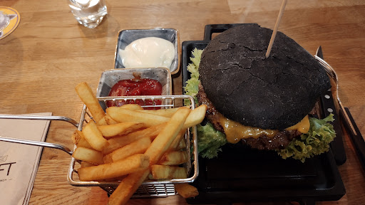 Bevor ich auf die kulinarischen Aspekte eingehe, möchte ich das Ambiente des Lokals beschreiben. Es wurde eine raue Konstruktionsoptik gewählt, die an New Yorker Lofts erinnert, kombiniert mit stilvollen Dekorationselementen wie einer begrünten Fassade. Diese Gestaltung ist zwar ansprechend, jedoch sollte nicht außer Acht gelassen werden, dass die Räumlichkeiten regelmäßig gereinigt werden müssen. An den Lampen und anderen Oberflächen sind Staub und Spinnweben zu beobachten; dies gilt ebenso für die grüne Fassade sowie die Pampas-Gräser. Es scheint, als sei seit der Eröffnung keine gründliche Reinigung erfolgt. Man stelle sich vor, dass eine Person mit einer Stauballergie in diese Umgebung eintritt – dies wäre äußerst problematisch.