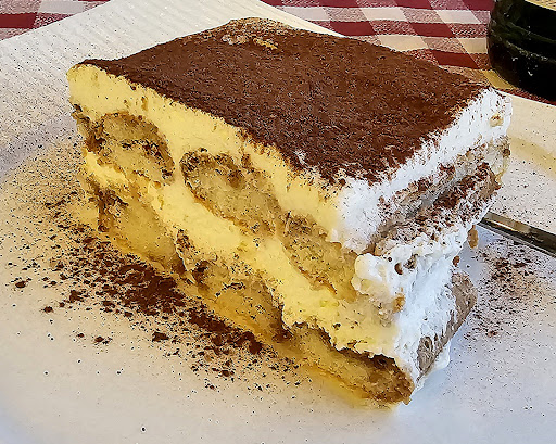 German hinterland makes for some fascinating dining. This place is pricey by any measure. As you'd expect out here, they use big portion sizes to balance the scales of culinary justice. Big must also describe their cooks and knives, as the knife work here is more frenzied than a Hitchcock shower scene. The salad has been treated like Cambodian forest, hacked to make way for similarly haphazard butchering of the otherwise passable curd. The homemade tagliatelle was actually packet-opened fettuccine and was overcooked almost to the point of congee. The sugo was fine, but the promised chilli heat wasn't present, the pepperless peppers customarily hacked. The pizza base is average in a good way, as is the sugo and rucola, and the broccoli nicely cut and cooked. The salsiccia again is the right actor in the wrong outfit with laryngitis. Ideally, this should be sausage farci (the inside bit in clumps) lightly dotting the pizza. This sausage is good quality and italian-leaning, so super thin slices would work. Instead, we get randomly assaulted chunks, better suited as the fingers of a pork puppet. Such a shame. Oh my, the "tiramisu". No mascapone, no savoiardi biscuits, no strega, no coffee, no egg, no tiramisu. It is to tiramisu what Mussolini was to socialism...(uses the same word, but no resemblance). The views are great and the...