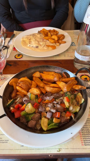 Read moreMit dem Ambiente im Innenraum wurde sich Mühe gegeben, das Personal ist wirklich sehr freundlich. Abder das Essen ist nur Durchschnitt. Für ein Steakrestaurant sollte das Steak dann auch auf den Garpunkt gebracht werden, den der Kunde sich wünscht. Die Pilzsahnesoße ist zudem Puddingartig und war komplett über dem Cordon-Bleu verteilt. Ich persönlich mag das nicht, da die schöne Panade dadurch komplett durchweicht. Ansonsten war es sehr saftig. Die Pommes waren leider auch nur mittelmäßig, da sie teilweise in der Soße lagen. Mein Beilagensalat sowie Brot zur Vorspreise fehlten gänzlich. Die Nachspeisenkarte war völlig verklebt, es waren viele sichtbare Fettfinger auf meinem Teller, als dieser kam und auf der Speisekarte ebenso. Das sollte definitiv sauberer seon. Wieder kommen...