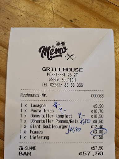 Read moreAmateurhaft, nie wieder! Das Essen selbst war bestenfalls Durchschnitt. Auch was die Grösse der Portion angeht. Aber der "Service"....Slapstick vom feinsten. Nachdem wir bestellt hatten passierte erstmal lange Zeit nichts! Gäste, welche nach uns gekommen waren, waren derweil bereits am essen. Dann nach mehr als einer halben Stunde kam eine Bedienung. " "Entschuldigung, was hatten sie nochmal bestellt?" Unsere Bestellung war also verloren gegangen. Gut, kann mal passieren. Wir nochmals wiederholt..."okay kommt sofort"! Nach einer weiteren Viertelstunde kam das Essen. Ohne Salat. Der kommt sofort. "Können wir noch etwas Mayo und Ketchup haben bitte"? "Ja kommt direkt!" Eine Viertelstunde passiert NICHTS. "Sorry, wir warten eine Viertelstunde auf den Salat und Mayo/Ketchup!?" "Oh Entschuldigung, habe ich ganz vergessen. Möchten Sie den denn noch?" "Ja sicher!" "Gut...kommt sofort!" Nach etwa 5 Minuten kam der Salat. "Ketchup kommt jetzt sofort "! Nach weiteren 5 Minuten Ketchup und Mayo im Tütchen. Nachdem wir dann nochmal 5 bis 10 Minuten warteten ehe jemand kassieren kam....nix wie weg hier! So etwas haben wir noch nie erlebt, wie bei...