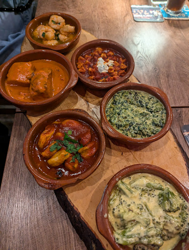 Read moreAuf der Suche nach einer guten Paella. Unser 4. Lokal, wir haben wir uns einen Tisch für 4 Personen reserviert. Vorbestellt haben wir eine Paella mit Meeresfrüchten und eine mit Hähnchen. Ein Tag vorher noch einmal telefonisch den Ablauf besprochen, damit die Küche auch die Infos hat, dass wir vorab noch Tappas essen möchten. Wir waren zeitig vor Ort und haben Tappas bestellt. Das Lokal war zu dieser Zeit nur mit wenigen Gästen besetzt. Unsere erste Bestellung mit Tappas dauerte fast 30 Minuten bis wir sie am Tisch hatten und genießen konnten. Echt lecker und wir waren voller Vorfreude auf die Paella. Die dann nach einiger Zeit vom Kellner gebracht wurde. Er stellte die Pfannen ohne Untersatz auf den Tisch. Wir wunderten uns schon, denn so eine heiße Pfanne tut dem Holz nicht gut. Doch schnell stellten wir fest, daß die Paella nicht mal lauwarm war..... Riefen den Kellner um die Paella zu reklamieren. Er war erstaunt und brachte sie wieder zurück in die Küche. Mittlerweile was das Lokal gut gefüllt. Nach einiger Zeit kam er mit den Pfannen und darunter einem Holzbrett wieder um uns die nun warme Paella zu bringen. Ja, sie war warm, aber das hielt nicht lange an. Die Pfannen waren mit den frischen Zitronen Stücken darauf wohl kurz in den Ofen geschoben worden..... Leider nicht richtig durch erhitzt. Geschmacklich waren die Tappas um Welten besser als die Paella. Die mit Meeresfrüchten bestand hauptsächlich aus Muscheln. Gewürze und Gemüse fehlten. Irgendwie sehr schade. Nicht mit einer Silbe wurde sich entschuldigt oder etwas dazu getan. Kann ja passieren, trotzdem das wir alles zur Unterstützung getan haben. Wir haben vor dem Zahlvorgang auf die Frage, ob wir zufrieden waren gesagt, dass wir es bis auf die Tappas nicht waren. Null Reaktion, ausser okay. Aufgefallen ist auch, dass der eine Kellner sich ständig durch die Haare Strich, damit die Frisur auch sitzt und auch ein Hund bekam von ihm eine kurze Streicheleinheit, bevor er dann weiter serviert hat. Fazit: Paella war ein echter Reinfall. Extra Teller für Hähnchenknochen und Zitronenreste wäre super gewesen. Oder größere Teller. Tappas lecker. Bedienung und Service ausbaufähig. Wir hatten eine Anfahrt von 30 Minuten, für eine Paella die leider so gar nicht lecker und typisch war. Bisher die schlechteste in...