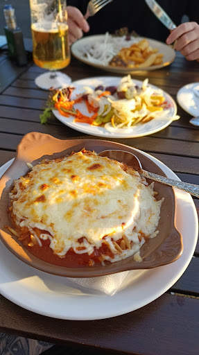 Heute zu unserem 1. Hochzeitstag wollten wir schön essen gehen und sind von dem Essen einfach nur mega enttäuscht. Mit griechischer Küche hat das nichts zu tun. Wir waren bereits auf Kreta und Korfu im Urlaub. Mein Mann hat dort fast jeden Tag griechisches Stifado gegessen und hat stets Kartoffeln, Reis oder Pommes dazu serviert bekommen. Beim Bestellen stellte sich heraus, dass es keine Beilage zum Stifado dazu gibt und auf der Karte sah das Gericht auch eher wie eine Haxe aus als wie Stifado. Mein Mann hat sich dann lieber für einen Grillteller entschieden. Ich habe Leber mit frischen Champions, Zwiebeln und Reis bestellt. Alles war schlecht bis gar nicht gewürzt, meine Leber waren 5 mm dünne trockene Schuhsohlen. Der Reis war ein matschiges fades Etwas gebadet in roter Soße. Die Champignons waren kaum zu finden zwischen den Zwiebeln. Und frisch waren die Champions vielleicht mal bevor sie in die Dose kamen. Fett schwamm auf meinem Teller. Der gebackene Schafskäse, den mein Mann als Vorspeise hatte war das einzige Highlight des gesamten Essens. Ich hatte als Vorspeise die Teigtaschen mit Feta gefüllt. Wir lieben Feta, aber die Taschen haben nach nichts geschmeckt. Alles in allem war einzig die nette Bedienung den 1 Stern wert. Das Essen hat uns den 1. Hochzeitstag gründlich vermiest. Es folgen hoffentlich noch...