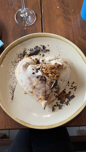 I cannot say enough good things about this restaurant! Beautiful atmosphere in the Schloss, lighting, decorations, all were superb. The server was friendly and brought our appetizer and drinks quickly. The caprese buffalo mozzarella was delicious with a tasty balsamic, rockets, capers and olives and served with an amazing homemade bread. The pizza Vesuvio had a nice spicy oil. And the maccheroni alla Norma was the best pasta I’ve had in a long time. Delicious tomato sauce full of flavor, eggplant and homemade pasta. Great wine selection and a nice limoncello digestive. We will definitely go back I’m already craving...