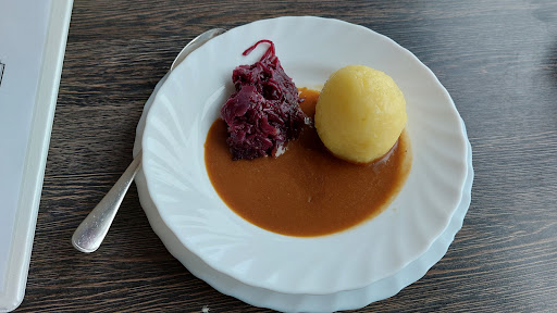 Der Braten war eine Vollkatastrophe. Hat geschmeckt wie zur Mittagszeit zubereitet und seitdem warm gehalten. Absolute Kantinenqualität zum Restaurantpreis. Der Braten war Hart, Zäh, geschmacklos. Die Klöße hatten eine richtig harte Außenhaut (wahrscheinlich vom warmhalten) und waren wie Kaugummi. Die Soße fad und geschmacklos. Absolut respektlos die zahlende Kundschaft zum Vollpreis so abzuzocken. 16€ für diese Katastrophe ist ein absoluter Witz und an Dreistigkeit nicht zu überbieten.