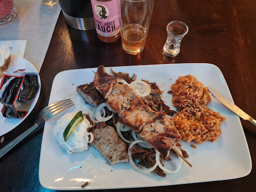 Wenn man hin muss, weil es nicht mehr viel Auswahl gibt, ok. Ansonsten würde ich nicht noch einmal herkommen. Das Essen war in Ordnung. Aber auch nicht mehr. Leider keine Kindergerichte auf der Karte. Wenn man keinen Tomatenreis mag, sich stattdessen für Kritharaki Nudeln entscheiden und davon ausgeht, dass die pur sind, wird man mit Tomaten-Kritharaki Nudeln überrascht. Schade, denn die passen nicht zu jedem Gericht. Tzaziki war gut und ordentlich Knoblauch dran. Nachdem wir unser erstes, wie sich am Ende raustellen wird, auch unser letzte Getränk bestellt hatten mussten wir lange auf die Aufnahme vom Essen warten. Also hielten wir uns an unserem ersten Getränk fest. Essenbestellung wurde aufgenommen und nun hieß es warten. Getränk waren mittlerweile leer und niemand sah sich in der Lage, einmal nachzufragen, ob noch etwas gewünscht wird. Das Essen kam, Gläser immer noch leer und die Bedienung war wieder weg. Also gut, dann soll es so sein. Die Gläser blieben leer. Mit Essen fertig, standen die leeren Teller länger wie 20 Minuten auf dem Tisch herum und niemand räumte ab. Ganz ehrlich, wenn ich als Bedingung nicht sehe, dass die leeren Teller und Gläser da stehen und evtl. noch was gewünscht wird, bin ich da...