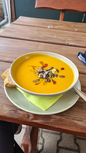 Read moreWer eine kleine Auszeit im hektischen Alltag sucht, ist hier genau richtig. Der selbstgemachte Kuchen und die Torten sind ein Gedicht. Es ist alles problemlos mit dem Rollstuhl zu erreichen. Eine behindertengerechte Toilette ist ebenfalls vorhanden, sowie Parkmöglichkeiten auf dem Hof. Und wer doch eher das herzhafte mag oder nach einer Radtour hungrig ist, kann hier einen leckeren saisonalen Salat oder Flammkuchen essen. Kinder und Hunde sind ebenfalls herzlich willkommen. Im Garten gibt es eine kleine Rutsche und eine Wiese, wo sich die kleinen Energiebündel ordentlich austoben können. Ob Drinnen oder Draußen, die Eisbecher kommen immer gut an.