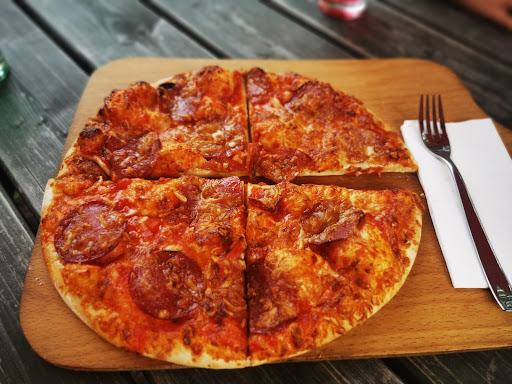 Beim Essen gibt es das übliche für einen Biergarten. Pizzen, Bochwurst mit Kartoffelsalat, Nudeln, Flamenkuchen und am Grill Bratwurst und Hacksteak. Die Solijnka wurde hier schon des öfteren angesprochen in den Bewertungen. Die ist aus unserer Sicht tagesabhängig. Also noal wenn es Resteverwertung im eigentlichen Sinn ist. Deftige könnte diese jedoch schon sein. Der Flammkuchen ist jedoch sehr lecker und sehr gut.