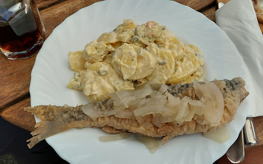 Wir waren öfters dort, weil uns der Weg und auch der tolle Biergarten sehr gut gefallen hat. Meiner Frau hat die Wildwurst besonders gut geschmeckt, eine echte Empfehlung. Die Wurst stammt von einem regionalen Metzger, bei welchem wir uns auf dem Heimweg reichlich eingedeckt haben. Natürlich werden auch andere Speisen, wie Suppen, Kuchen, etc. dort angeboten, diese haben wir aber nicht probiert.
