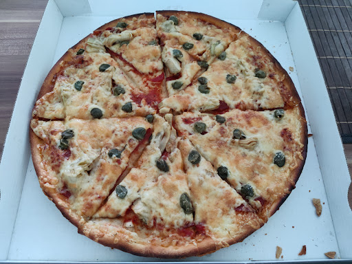 Read moreHaben uns auf eine Italienische Pizza gefreut, was kam, war nach 1,5std eine mit Käse überladene Pizza (American Style, wobei selbst in den USA die Pizzen besser belegt sind) Hatten 5 Pizzen mit Zutaten nach Wunsch bestellt aber außer die Oliven konnte man nichts erkennen, geschweige denn schmecken.