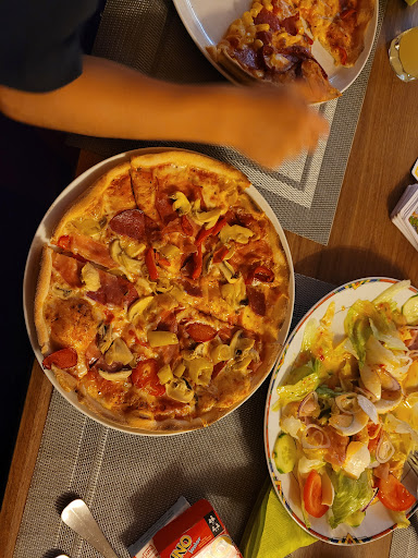 Preis Leistung passt nicht. Aufgrund der Empfehlung des Hotels auf der anderen Straßenseite sind wir hier her gegangen. Es ist kinderfreundlich und es gibt verschiedene Bücher in verschiedenen Sprachen für die Kids zum anschauen. Als die bestellte Pizza, laut Karte 30 cm Durchmesser,(auf dem Bild liegt eine Kinderhand neben der Pizza) kam waren wir total überrascht, da die Pizza kaum die Größe einer Tiefkühlpizza hatte. Das ist natürlich ärgerlich wenn man sich eine Pizza zum teilen holt. Auch der italienische Salat, der auf Nachfrage als groß bezeichnet wurde, war ein Witz. Als Hauptspeise erwarte ich einen Salat der nicht nur den Teller bedeckt. Und bei einem Preis von 7,50 € keinen Eisbergsalat mit einer kleinen Tomate und 4 Gurkenscheiben. Geschmacktlich war es ok, da auf der Pizza mit Paprika eingelegte Paprika aus dem Glas lagen, hat es die Pizza leider sauer schmecken lassen. Beim nächsten Besuch laufen wir lieber 150 m in die Altstadt und können auch draußen sitzen und haben mehr...