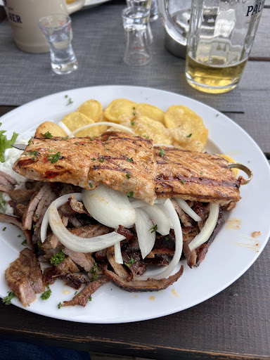 Kannst du diesen Ort weiterempfehlen?- NEIN! Kehren Sie bitte in ein anderes Lokal ein! Positiv ist die Überdachung des Biergartens mit integrierter Sprühnebelanlage anzumerken, die bei den hohen Temperaturen die Umgebungsluft etwas abkühlt. Positiv ist auch, dass das Ambiente einen gepflegten und sauberen Eindruck macht als auch die Anzahl der Plätze. Was nicht geht: Unsere Gruppe von 11 Leuten nahm im Biergarten Platz. Auf dem Stuhl ließ es sich gut sitzen. Störend war die Metallstrebe am Tisch, die zwischen den Tischbeinen angeschraubt war. Bei diesen Temperaturen von über 30 Grad und stehender Luft wären große Ventilatoren angebracht, so wie ich es von Kreta her kenne. In der Landessprache agierende Kellner weit gefehlt, nicht einer antwortete auf mein Kalimera, Efkaristo oder Signomi. Von der Karte bestellte ich das Gericht Nr. 21, Saganaki Skordato, und Nr. 2, Griechischer Bauernsalat. Meine Mitstreiter entschieden sich für Deftigeres. Nach kurzer Zeit erhielten sie die typische Vorspeise, einen Teller mit Salat. Im Anschluss wurden die Hauptspeisen aufgetragen. Mir wurden gleichzeitig beide Gerichte gebracht, obwohl ich wie die anderen auch den Salat vorher gegessen hätte. Dazu stellte der Kellner einen kleinen Korb mit 4 kleinen Scheiben Baguettebrot. Von reichlich Platz auf dem Tisch Fehlanzeige, ich stapelte den Korb auf den Salatteller. Der Saganaki schmeckte sehr salzig, ich streichte die Schicht vom Feta. Der Bauernsalat wurde im tiefen Teller gereicht. Oben auf der Käse mit Gurke, Tomaten, Olive, Zwiebeln, die teilweise nur geviertelt waren. Unten angekommen befanden sich die kleingeschnittenen Salatblätter in Tunke. Die schmeckten säuerlich als wenn schon der Gärungsprozess eingesetzt hätte. Bei der Hitze sollte man alles kühl halten. Das Brot im Körbchen war trocken und bröselte bereits, ein untrügerisches Zeichen dafür, dass es bereits längere Zeit an der Luft stand - frisch schmeckt anders. Ob nur ich so empfinde, fragte ich am Tisch nach. Antworten wie "Das Fleisch war schon tot", "Die Pommes waren trocken" und "Das Radler war sehr dünn" bestätigten meine Annahme, dass es hier nicht zur Zufriedenheit der Gäste zugeht. Bei der Bezahlung wies ich den Kellner auf das trockene Brot hin, worauf er eine hitzige Diskussion begann und jegliche Schuld von sich wies. Ich wäre überempfindlich, so seine Aussage. Ein No-Go sondergleichen! Beim Abräumen geht der Kellner normalerweise um den Tisch und nimmt das Geschirr selbst auf, hier lässt er es sich vom Gast mit einer Selbstverständlichkeit geben. Da muss der Betreiber die Tische halt mit mehr Platz aufstellen. Negativ auch eine Türklinke in der Toilette - beim Griff an diese hatte ich das Gefühl, in eine Fettschicht zu greifen, sehr unangenehm. Nach dem Händewaschen suchte ich verzweifelt nach Papertüchern im Automat. Der war leider leer. Lebensweisheit: Willst du in einem Lokal unbeschwert essen, schaue dir zuerst die Toilette an! Ich fand wieder Bestätigung darin. Mir fehlte der Wohlfühlfaktor, daher war das mein einziger Besuch dort, mit bleibendem...