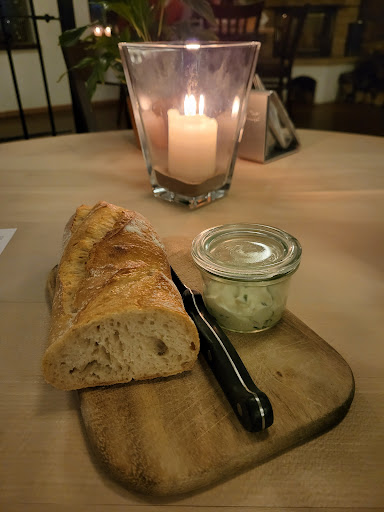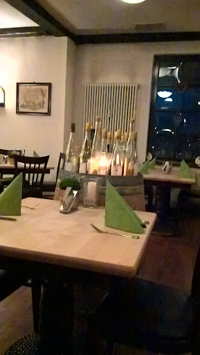 Angeboten werden regionale Gerichte im saisonalen Wechsel. Das Ambiente hat die Anmutung eines Landgasthofes mit viel Naturstein und Holz, aber wohltuend und nicht zu rustikal.