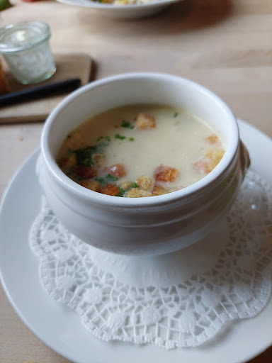 Historisches Bahnhofsgebäude, edel-rustikal. Gemütliches Ambiente. Terrasse an den Gleisen. Viele Blumen. Bei Hitze spenden Bäume Schatten. Zuvorkommender Wirt. Brachte Kissen Ehe wie fragten. Bei aufziehender Kälte im Biergarten gleich Platz im Restaurant zugewiesen. Überschaubare Speise - und Tageskarte. Gegessen: 1)Spinat-Knödel mit geriebenem Hartkäse an Salat lecker-leicht, O.-Ton: "unverschämt gut". 2) Kalbsrahm-Gulasch an Bandnudeln (mit ital. Namen). Sehr zartes Fleisch. Soße abgerundet im Geschmack. Jeder Bissen verlangt nach dem nächsten. Rahm überlagert nicht den Fleischgeschmack. Kein Gewürz dominant. Nuance von Kümmel im Hintergrund führt die Phantasie durch verschiedene Geschmackswelten. Guter Wein! Einiger Mangel: Keine Getränkekarte erhalten. Trotzdem: sehr...