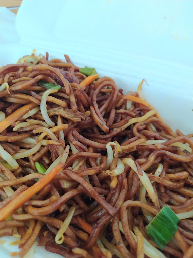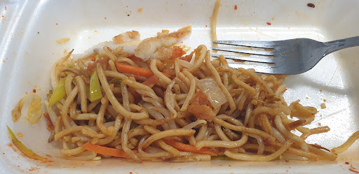 Gebratene Nudeln wurden ebenfalls in Sojasoße ertränkt, das jeder andere Geschmack überdeckt wurde. Ausserdem sieht das ganze unappetitlich kackbraun aus.