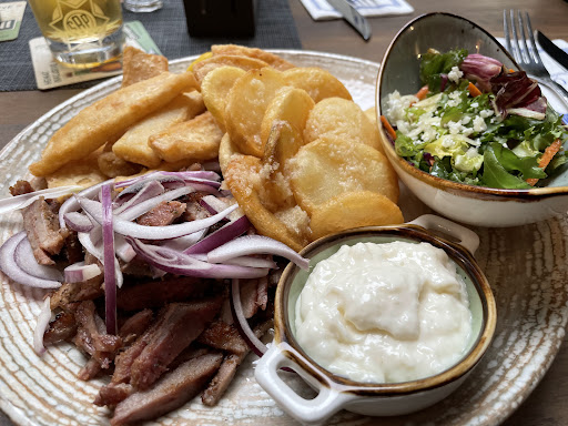 Read moreEin sehr toller griechischer Abend. Das Restaurant hat einen freundlichen und hellen Gastraum, im typischen griechischen Style. Zusätzlich befindet sich draussen ein kleiner aber feiner Biergarten. Die Bedienungen sind super freundlich, schnell, aufmerksam und unaufdringlich. Bestellungen werden schnell aufgenommen und in sehr kurzer Zeit an den Tisch geliefert. Unsere Vorspeisen bestanden, unter anderem aus selbst-gemachten Käse-Kroketten, welche vorzüglich schmeckten. Als Hauptspeise hatte ich gebratenen Kalamaris, mit Gyros (als Extrabestellung), Knoblauchkartoffeln und Aioli. Es war super lecker, selbst-gemacht, schmackhaft, weich und ein Traum. Die Preise sind Fair und im unteren Preissegement gegenüber anderen Griechen in der Stadt. Nach diesem ersten Besuch ein echter kleiner Geheimtipp für mich. Lasst es...