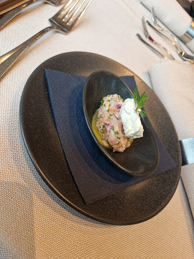Read moreWir sind zum Flying Dining im Lokal gewesen und waren absolut begeistert. Für nur 45€ pro Person haben wir ein 5 Gänge Überraschungsmenü bekommen. Es wurde wundervoll angerichtet - die gesamte Atmosphäre war nobel und einladend. Auch die Bedienung war top. Wir wurden regelmäßig nach unserem Befinden gefragt und hatten eine angemessene Pause zwischen den Gerichten. Ich kann das Dinner absolut weiterempfehlen, geschmacklich sehr gut! Als kleinen Kritikpunkt merke ich an, dass ein festlich eingedeckter Tisch (passend zum Geburtstag) gewünscht und bestätigt wurde, er jedoch nicht nach o.g. Thema gedeckt war. Als kleine Anmerkung: vielleicht könnte man vor dem Dinner bzw. bei der Buchung fragen, ob es sich um einen vegetarisch (usw.) speisenden...