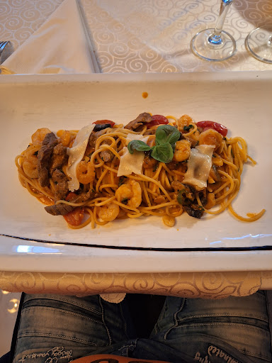 Come a casa... Nei bene e nel male. È un anno esatto che lavoriamo a Zwickau ma è la prima volta che proviamo il ristorante che per altro credo abbia da poco cambiato gestione. Siamo entrati incuriositi da una pagina IG gestita in modo più o meno attivo rispetto alla media locale anche se poco fiduciosi per il monte di errori grammaticali (e di ingredienti...) sul menù. Siamo accolti cordialmente ma non calorosamente. Il locale internamente è molto elegante anche se tendente agli anni 80/90. Il cameriere che ci serve è italiano ma non si rivolge a noi se non con due parole su 10 in italiano (premessa,parliamo entrambi perfettamente tedesco e i miei commenti sono esclusivamente in relazione all'ambiente italiano che ci si aspetterebbe in un locale italiano). Ordiniamo una tartare di salmone, un carpaccio e un piatto di pennette panna e prosciutto per la piccola. Gli antipasti sono Impiattati a regola d'arte . Deliziosi . Conditi in modo eccelso.impeccabili. Ordiniamo uno spaghetto aglio olio e scampi,un salti in bocca alla romana. La pasta della piccola avremmo preferito arrivasse con gli antipasti, ma fa nulla. La pasta aglio olio e scampi purtroppo deludente nel complesso. Passabile la cottura ma aveva UN solo scampo e diversi gamberetti. Ma soprattutto,arriva già servita con parmigiano (mai richiesto e non presente sul menù). Non sono una persona che fa troppe storie quindi ho lasciato correre. Ma mia sorella l'avrebbe mandata indietro (e mio marito mezzo siciliano ha storto il naso..). I salti in bocca alla romana BUONI!Carne battuta poco e salsa un po' troppo concentrata con vino poco sfumato ma la ricetta sembrava autentica (siamo di Roma :P). Pasta della bimba,ok. Piattone abbondante a prezzo più che onesto. Nel complesso,noi che cuciniamo, probabilmente avremmo prodotto risultati simili a casa (la differenza direi sta nelle materie prime ovviamente) . Nonostante ciò il locale si merita 3 stelle e sicuramente una seconda chance per provare la pizza che aveva un...