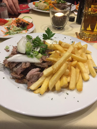 Read moreGriechisches Restaurant im Hotel Best Western An einem Samstag Abend vor Weihnachten haben wir das Estia besucht. Es wirkt nicht nur wegen der Temperatur im Estia sehr kühl. Zuerst waren wir ganz alleine, dann kamen noch weitere 3 Personen aus dem Hotel. Gewohnt bin ich beim Griechen griechische Musik, wir hörten Radio und ein Sender den wohl gerne junge Leute hören, nicht ganz unsere Musikrichtung Das Salatbuffet bestand aus geraspelten Karotten die den Spitzen nach zu urteilen schon länger standen, absolut geschmacklosen Tomaten und Gurken und grünem Paprika sowie grünem Mischsalat. Es gab zwei Dressings zur Auswahl und mit Essig war der Salat dann auch gut. Positiv überrascht hat uns dann das Essen. der Extrawunsch Pommes ohne Salz wurde erfüllt, sowohl das Gyros (12,90€) als auch die Lammtrilogie (18,50€) waren sehr gut. Zum Schluss gab’s noch einen...