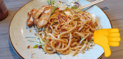 Der Innenraum wurde zwar schön neu gestaltet, aber der "Service" ist unterirdisch und das Essen was man bekommt ist eine Frechheit. Die Bratnudeln haben nicht ein Fünkchen Röstaroma gesehen, das gebackene Hähnchen ist trocken und faserig, selbst das Gemüse ist labbrig und nicht knackig frisch. Wie bekommt man sowas überhaupt hin? Die asiatische Küche steht für Frische, für knackiges Gemüse, für Geschmack. Man hat zwar was im Mund, aber geschmacklich ist das eine Null-Nummer. 👎