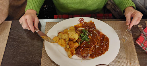 Die Speisekarte ist kurz und prägnant, hat für jeden Geschmack etwas. Wir entschieden uns für ein Rumpsteak mit Kräuterbutter und Pommes sowie ein Spargel-Cordon bleu mit grüner Soße und Kroketten. Beide Gerichte waren hervorragend zubereitet – das Rumpsteak war perfekt medium und das Cordon bleu war geschmacklich ein Hochgenuss.