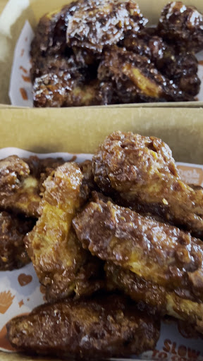 the interior of the place is very nice, i loved the dim lights and the seating options differ. it has charging and cable ports and the music is not too loud and not too low, so it could be a work/study space. the music choice is very good, i heard a dave song and was impressed. we ordered the mac n cheese, mothaclucka burger, big shawty burger, 4 wings, and we wanted fries but i guess the server misheard and gave us rice instead. it took a reasonable amount for our order to be ready, around 35 minutes. the burgers are way smaller than expected but were still really tasty and delicious, spicy as well. the sauce on the wings was good, however, i had 1 undercooked wing for some reason which thankfully i had lastly because that would've ruined my appetite. i also noticed staff do not use gloves while preparing the chicken. there was a cook using her bare hands and dipping the raw chicken in the sauce to later cook. staff is really friendly and no one had an attitude, they were smiling and very helpful when i needed help because one of the charging ports wasn't working. overall i would rate it a 7/10 and would maybe...