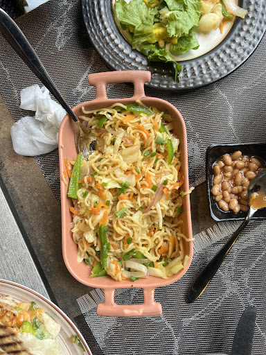 Inside, the ambiance is chic and inviting, with soft lighting and comfortable seating. The aroma of sizzling dishes fills the air, as talented chefs prepare a diverse menu of international cuisine. You can savor mouthwatering juicy steaks, or delectable vegetarian options. The food is not only delicious but beautifully presented, making every meal a feast for the eyes as well. We had the pork tray for too and it was really delicious. We enjoyed every bit of the combination 😋💃🏽 It’s a place where you can relax and enjoy fantastic food whiles hanging out with friends. I spotted two giant TVs that were going live football matches 👍🏽 The waiters are super friendly and even recommend some of the best cocktails 🍹. The manager is always around helping customers and making sure everyone is ok. It was my first time there and can’t wait to go again and try another meals 😂(the sea food tray looks tempting 🤫) And oh, I usually don’t visit washrooms at restaurants but I couldn’t hold myself when we visited their washroom, mine oh mine, the place is so neat you can even sleep there 😂. I even had the audacity to take pictures...