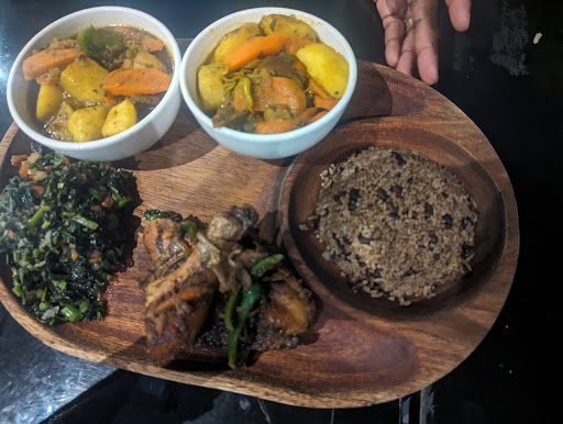 I literally wanted to cry because I was raving about this to my parents.. the service was lackadaisical and unattended. It took 45 minutes to get the bill and we had to go look for our server. Itâs just unfortunate because the ambience is really beautiful. However the consistency isnât. There is no such thing as âGhanaian fusion foodâ our seasonings are completely different, and they donât taste well together with that being said, the only thing that kind of tasted Jamaican to me was the curry.. the onions and green peppers on everything is wild and typical for Ghana garnish but Jamaican people cook with that and donât like raw vegetables on our food.. especially red onions! I understand that seasonings may be hard to get here such as our thyme, pimento, and scotch bonnet pepper.. those are the quintessential ingredients for any Jamaican recipe without those you will never get the flavor of Jamaican food authentically!