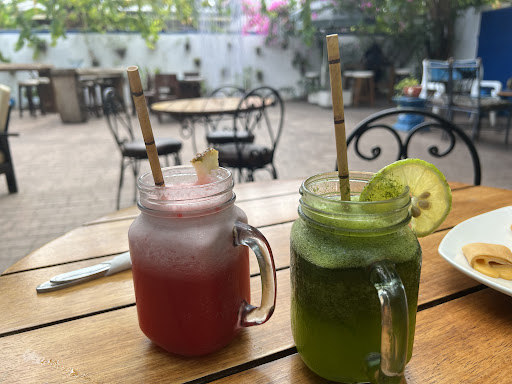 The space was really wonderful. Their patio has a plant canopy and it was quiet and the service was better than most places. The juices we had (pink lady and minty lemonade) were wonderful. However the food, meh. I had the bombastic that said it came on sourdough (my favorite and something I’ve yet to find here) but it was like a multi grain bread with lot of nuts, the avocado tasted old and I kind you not, the tomatoes tasted like moth balls. My son had the cheesy crape that was pretty basic but tasty. I would try again and get something different but my dish was very poorly executed.