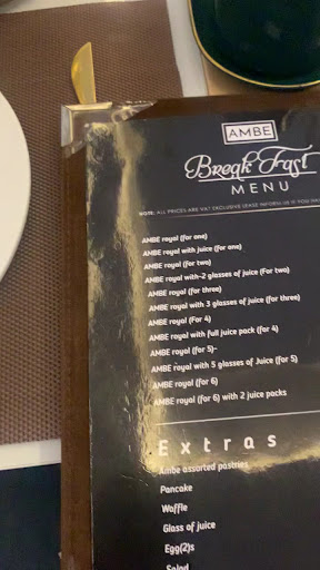 Read moreThis was my first time dining at Ambe. We went for lunch on a Saturday. Patrons have a choice of indoor and outdoor seating. We chose indoors because of the heat. We were shown to a small, 4 table room. Each table had 4 seats. The atmosphere was a bit unsettling because of the size of the room. Also, even though the tables were set well and the chairs of good, comfortable quality, the room appears to have seen better days. One of the "Ambe" signs on the walls was missing the letter "E".