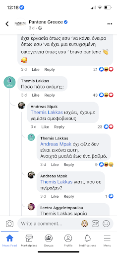 If you’re a member of the LGBTQI+ community, or a decent human being at least, don’t support this business! The owner publicly expresses his “views” on the matter (Themis Lakkas, the owner, about Pantene’s new ad. Translation: what’s the end of the rock bottom? And the other comment: no, this is not something to be seen, we’re open minded...