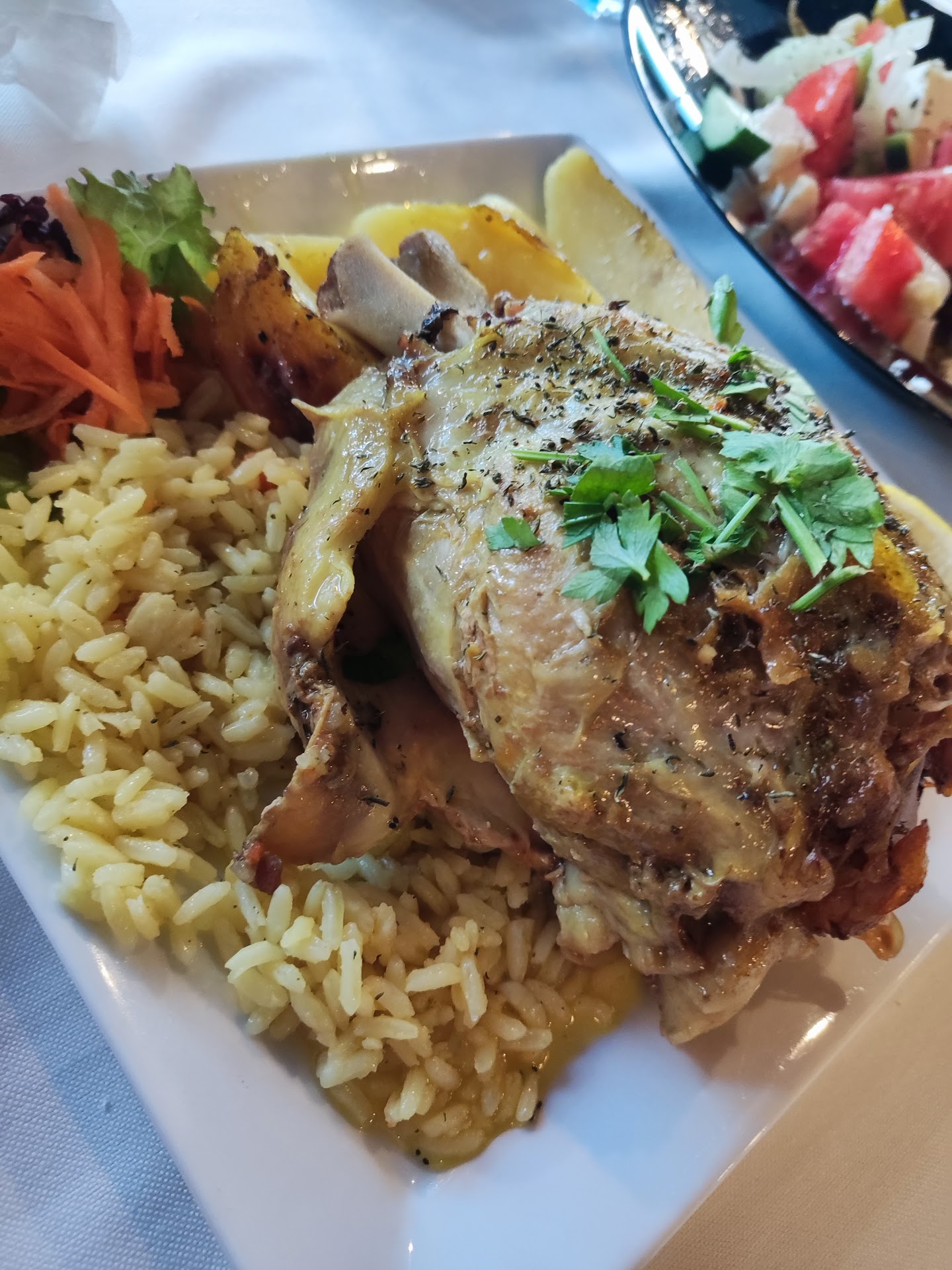 We tried the rotisserie lamb and pork, and they were absolutely phenomenal, tender, flavorful, and cooked to perfection. A real highlight of the meal.