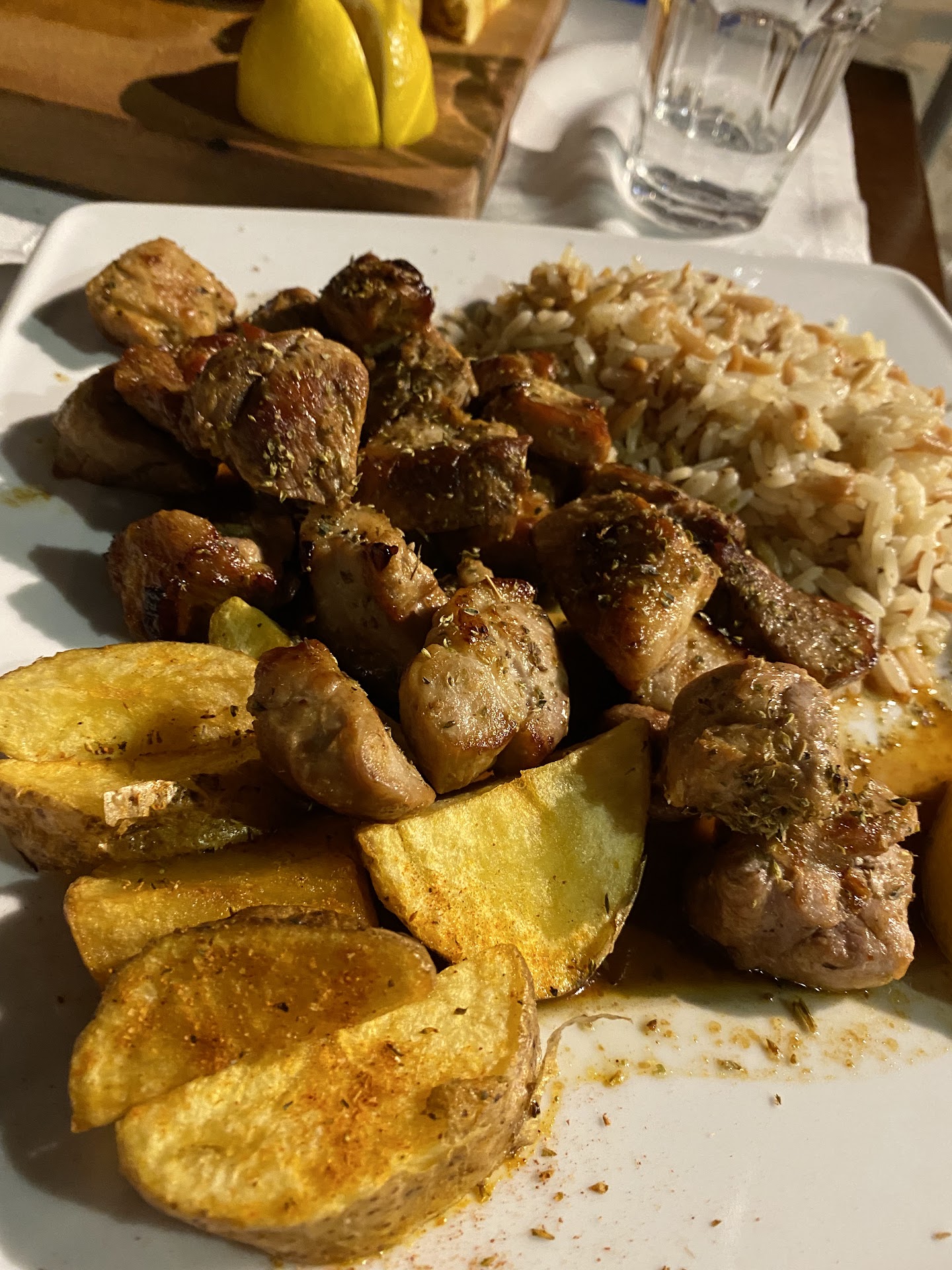 Read moreOn first appearance the place looks nice and cozy. As for the food all I can say is that my mother in-law can cook ten times better. We ordered an appetizer of mediocre mushrooms that were tasteless. We also ordered the "piglet with cherry tomatoes" as you'll see in the photo the dish came garnished, as with every other dish they serve, with one cherry tomato and three potatoes. The other was supposed to be a medium-well cooked veal steak that was burned on the outside and slightly pink on the inside. Other than the glass of local wine I wouldn't recommend this place to anyone looking for enjoyable...
