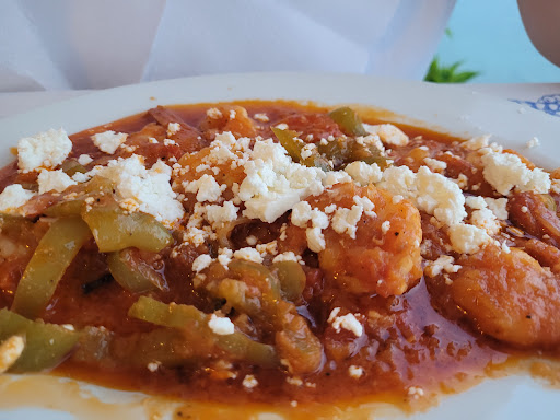 Panos and Katerina will make sure you are very well looked after! We spent the whole day here and nothing is too much trouble, when we arrived we got 3 sets of beds for 6 of us, it was unbelievably €12 per set, we then had omelettes for breakfast which were delicious with a freshly squeezed orange juice, then lay on beach where we could listen to low played music (they had a great playlist) it is a pebble beach so would recommend taking appropriate footwear but this made the sea so clear, we needed our devices charging they had plugs and a port they kindly offered us to use, we had drinks brought to us by our beds, beers, water, soft drinks and a highly recommendable Mojito! We all had a early dinner, fresh fish (which we could choose from of the ice) which was also filleted for us, pork with orange and plum butter sauce, risotto plus more with bottled Sauvignon and more mojitos! We had the best beach day and they couldn’t have been any more helpful and hospitable they also rang us taxis so we could get back to our hotel at the port. All of this cost us approximately €60 euros per person for food, drinks, sun beds and great hosts! Thank you Panos, Katerina and Meltemi for...