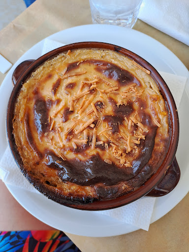 Se dicessi che questa è la "tipica taverna greca" direi una corbelleria enorme, per la semplice ragione che oggi le taverne tipiche greche non esistono più. Proprio così. Non esistono più. Non vi fate abbagliare da quattro elementi di arredo che richiamano romantiche atmosfere da film.... tutto (o quasi) fumo. Oggi dovete avere la pazienza,l'accortezza e - diciamolo - la fortuna di trovare posti dove ancora si cucinano i piatti della tradizione e lo si fa alla maniera casereccia (e questo implica tutta u a serie di accorgimenti dei quali non posso trattare qui per motivo di spazio e tempo). Ecco quindi che la Taverna "Statheros" è quella che si può definire una delle ultime cucine della tradizione. E il nome non è nè un caso, nè una esagerazione, perché Statheros in italiano lo possiamo tradurre con "costante", immutevole, stabile.... insomma un luogo dove il tempo della cucina si è stabilizzato in un tempo passato, quando le donne greche preparavano le pietanze per la famiglia o per gli astanti alla maniera, appunto, tradizionale. Ed ecco quindi che da "Statheros" troverete sia i piatti più popolari che le pietanze tipiche del luogo (diverse da luogo a luogo), dal mousaka ("il"mousaka, e non "la" mousaka, non è di genere femminile, non me ne voglia nessuno ma è così 😁) alle keftedes, dal "saganaki" ai "gemista", e poi ecco pollo e patate, o l'agnello al forno col formaggio di Paros (non la feta) i funghi e i peperoni verdi, oppure la zuppa di ceci stufati al forno con cipolla e rosmarino, e via discorrendo....passando da sua maestà il fritto di acciughe (qui le chiamano sardine ma in realtà non sono le sarde che conosciamo, ma proprio acciughine) che io, personalmente, adoro accompagnare con qualche fettina di cipolla rossa condita con appena di limone, provare per credere (anche loro sono rimasti un attimo interdetti..."onions, only?"... Yes! 😁). Insomma, per farla breve, ma ci sarebbe ancora molto da dire, se volete fare un'esperienza di gusto, ma di quelle vere (quale cucina molecolare del cavolo!!!) dovete fare un salto da Paros ad Antiparos (ci sono traghetti ogni 5 minuti fino alle 3 di notte e la traversata dura circa 6 minuti) e venire a mangiare, di gran gusto, da "Statheron", però piano piano, lentamente, avete tutto il tempo del mondo perché qui...