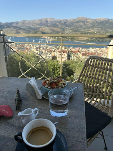 Read moreCute, seems to be new-ish coffee and breakfast place just outside of Argostoli (read: plenty of parking). There is indoor seating, a big picnic bench out near the street, and then a big patio. All the times we've been there, only about 1-2 of the tables are shaded in the morning, with the others in full sun. Great view of the water from almost anywhere you sit outside. The salmon toast is really good, and comes with a little salad too. I got a smoothie which was fine and what I wanted for the temperatures, but was a little icy and disappointing. The coffee is good (have tried both the hot and Freddo cappuccino) - this is the only place that I've seen in the nearby vicinity that has non-dairy milk!! They had soy milk and almond milk. The yogurt with seasonal fruit/honey/walnuts is also very good. The consistency of the honey might be different here but it is a little more runny and tastes less like the honey I'm used to,...
