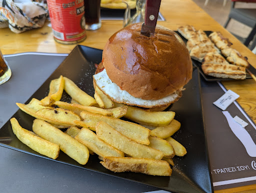 I visited Burgerata Burger Bar in Skala and really loved it. On our first visit, we had the pork gyros and chicken gyrosâboth were super tasty, packed with flavor, and cooked just right. We enjoyed them with a couple of cold beers while sitting at a table with a lovely view of the sea. You could see the waves just across the streetâit had such a chill, breezy vibe.