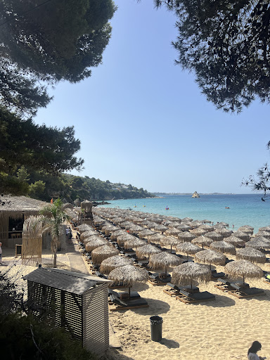 Read moreThis is a great beach and it has all of the facilities that one needs with nice toilets, super comfy beds (10 low season - 12 Euros high season ) basic sun-beds 7 Euros. It has walk boards to save your feet from the burning hot sand on those very hot days. The beach bar while being nice is a bit like a self service cafe. It is safe for bathing too. There is car parking, but access from the car park is via a steepish incline (not great if you have any kind of mobility issues). We visited this beach last May and we have just returned but this year we found the beach had expanded with more beds and it felt much busier. There was one major issue for us which the owners need to take note of: the young lads with the orange t-shirts who patrol the beach and sell the beds; we had two or three of them constantly near us they spent most of their time giving each other high-fives. This behaviour was extremely annoying and distracting: when I go to the beach I want to escape from it all and not have juvenile lads messing around all day long right in front of my sun-bed. My wife stopped me from saying something. For this reason we won't be coming back. These lads could have made themselves more useful, if, when taking your 10 euros they said "if you need your bed moving sir (or madam) just ask and one of our team will assist you".. instead of which they say nothing and just slap each other by the hand. This all might sound trivial, but it was...