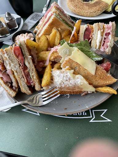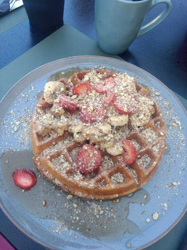 Let's start with the food, that is awesome, fluffy and delicious 🤤 we had waffles with banana & strawberries and box for 2 plus drinks. I even talked with chef when asking for packing leftovers, as it was simply toooo huge 😁😁😁 Problem was with the service, waiter came for order 10 minutes and brought 1 portion with tea however didn't bring other coffees even asking if we want sugar or not... I even managed to finish my portion before "box for 2" arrived for my friend, which was 20 minutes later... It wouldn't be such problem to wait, however, this was morning and there wasn't much of a traffic to have such delays (especially when all takeaways were handled promptly as we...
