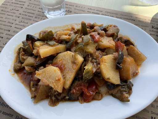 Kaliva is one of our favorite restaurants in Skala. It is off of Main Street so it has sea views and cool sea breezes. The kitchen is very consistent and the wait staff is superb. My husband eats meat and really enjoyed his meal that our server recommended. I must note that our female server was very attentive and VERY conscientious that my daughter is VEGAN and I am Vegetarian. She double checked (twice) with the kitchen to make sure that the dishes we ordered were suitable for our tastes. We honestly felt that she respected our lifestyle. While the options are limited for vegans / vegetarians, the dishes we ordered were delicious! The Briam is vegan with generous portions and very tasty. The Gemista is vegetarian was great made with some feta cheese. Both of our dishes were fresh and well seasoned. We also ordered the fried courgette as an appetizer and we REALLY liked them. We might even come back at happy hour just for them. Haha. Kaliva is very clean. Usually has lots of free parking as it’s located on the road into town next to the Roman Villa. Nice sea views and cool breezes enhance the dining experience. They also serve a great breakfast in case you are visiting Skala for the day. If you’re in Skala for an extended period of time, make sure you have at least one nice dinner at Kaliva. Reservations are recommended, but if you like to eat early like we do, than walk ins are okay....