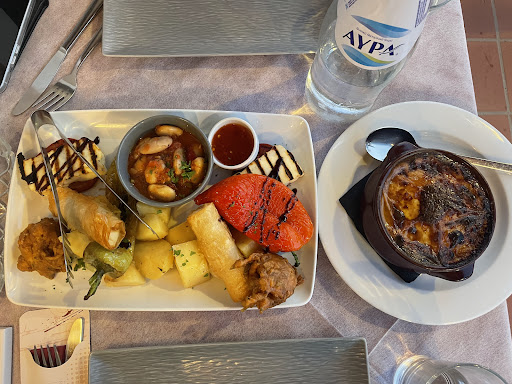 Read moreWe had a wonderful date night evening at Manor House. Itâs a beautiful location in the upper part of Skala with views and a cool breeze surrounding the outdoor seating. We ordered the vegetarian platter for two. It felt great to have a composed dish for a vegetarian and I wasnât relegated to ordering off the appetizer menu. They also have the Lixourian Beer which is delicious. The first time we came was many years ago with our local relatives. And it is still terrific. Add Manor House to your list of restaurants to try. Especially if youâre vegetarian. Their Mousaka was delicious and well seasoned. And they have an extensive list of meat dishes for carnivores. And you must try their rice pudding which is served...