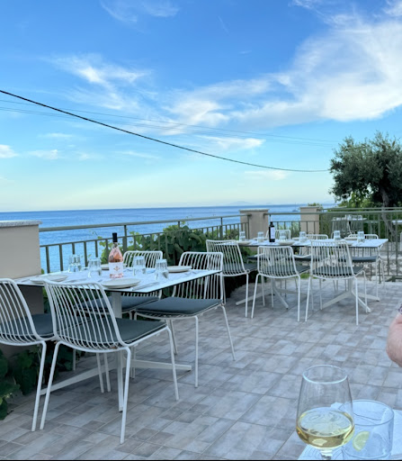 If you love great views and serene settings, know that this place is perched on a cliff overlooking the sea, and the tables are in a countryside-style garden with thick shade, olive trees and relaxing buzz of cicadas.