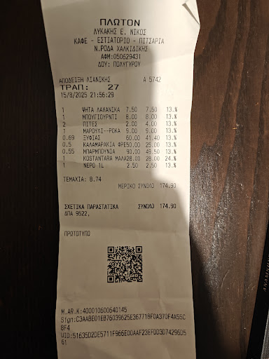 Read moreIn my professional experience as a Gastronom owner of 3 restaurants I can definitely say that Ploton restaurant has a great quality of products, very well cooked, atmosphere is wonderful and also a great service, I strongly believe that good restaurants has to be a few euros more expensive, me personally i pay that money gladly when I get what I paid for and what I got had a great value for money! I definitely can recommend this...