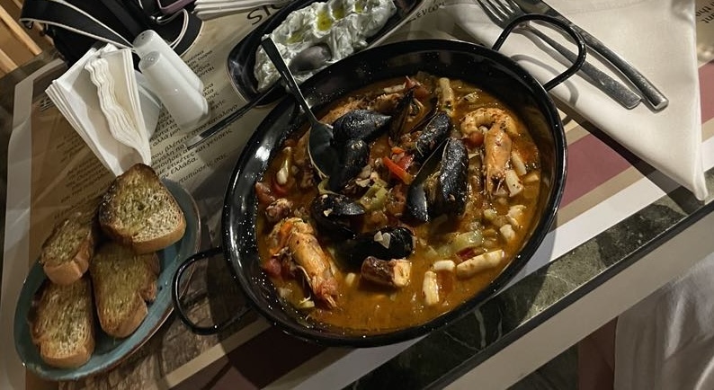 The appetizers, such as ouza and fish-eggs, showcase the chef's expertise in blending traditional ingredients. The main courses are a symphony of tastes, the seafood options, especially the grilled octopus, horse-see, squids, seashells and shrimps, reflects the restaurant's commitment to quality and authenticity.
