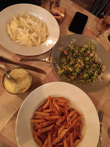 portions were very generous, we ended up having still delicious cold pizza for breakfast...