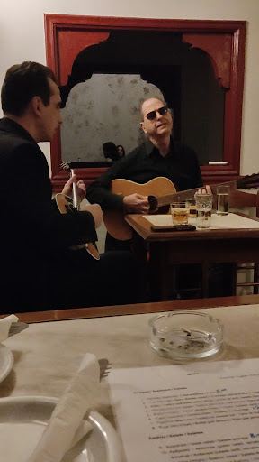 A comida estava deliciosa e foi servida com abundância. O vinho também é bom. O atendimento é informal e simpático. Uma pessoa sente-se em casa. A música superou as expectativas. Os músicos eram muito bons e não demorou muito a que toda a gente cantasse e muitos dançassem. Foi uma experiência fantástica e adoraria poder regressar lá um dia. Este momento foi o auge da minha visita a Atenas. Aos proprietários deixo a sugestão de instalarem um extrator de fumo, já que se...