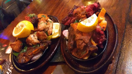As for food, my order was mixed meat platter, vegetable biryani, and garlic naan. The food was fine, I wouldn't say 5-star but it was not bad either. The lamb was cooked fine, no strong smell, so it was fine by me. The chicken tandoori was good, juicy and tasty. The other chicken on the platter was kind of dry, so I didn't eat everything. The vegetable biryani was kind of too strong which made it a bit bitter. But with a bit of salt, it was quite balanced. Overall, we were having a good time.